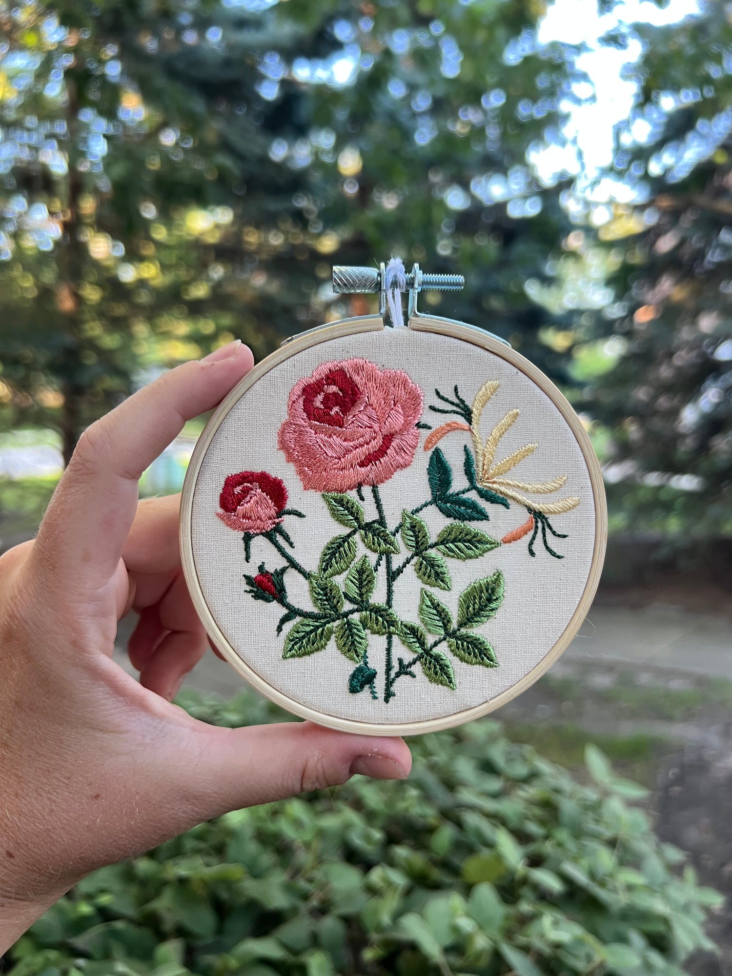 4in wooden hoop with birth month flowers embroidered on muslin fabric with felt backing