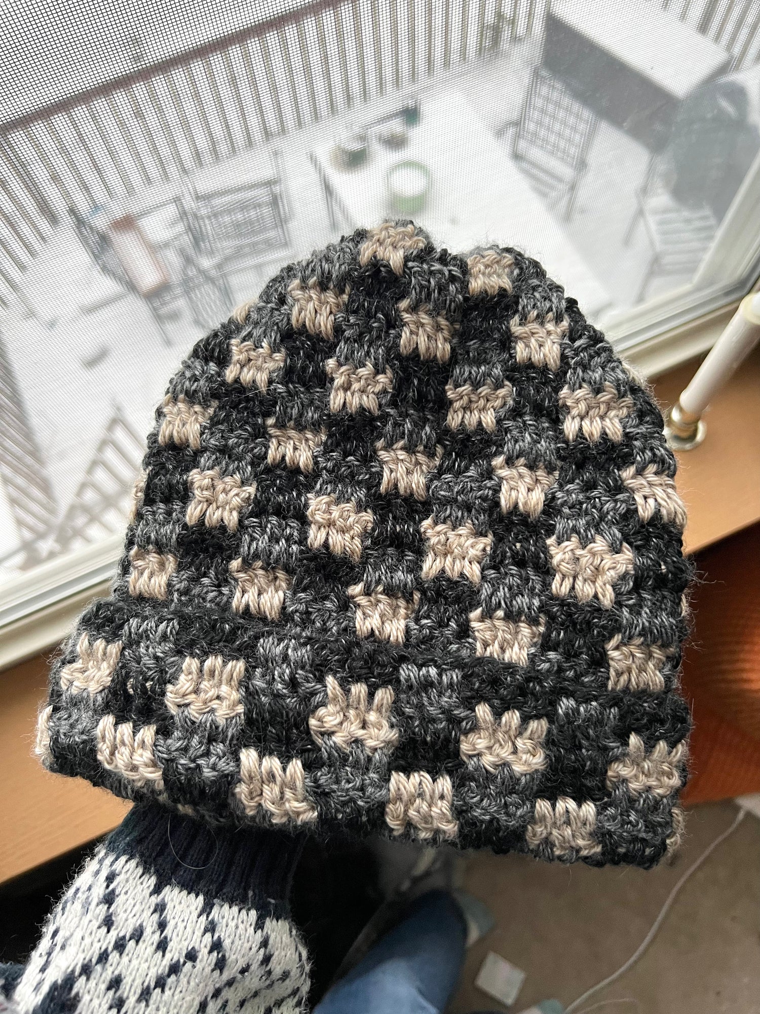 hand crocheted checkered beanie