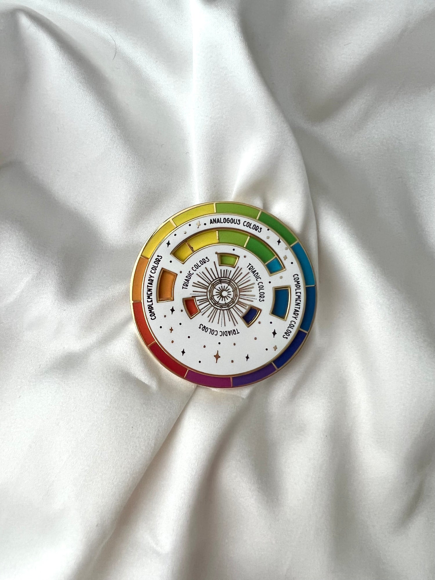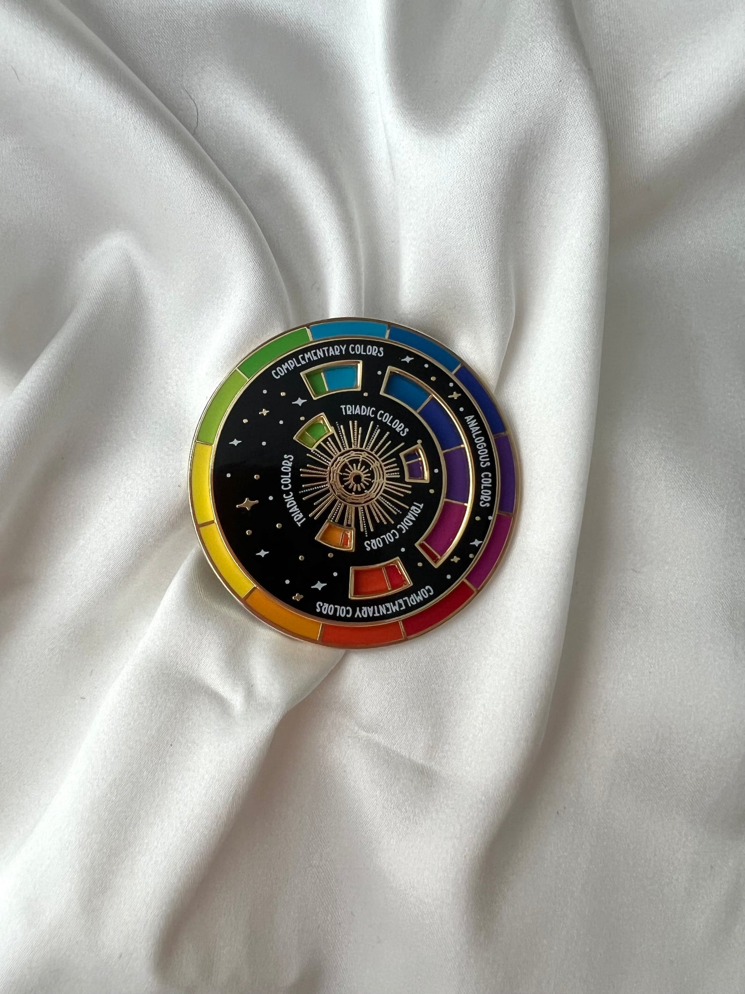 this is a 2" double-layer of metal, which makes it larger and heavier than most enamel pins. Secure your pin with deluxe locking pin backs. true colors may slightly vary. this color wheel was designed for fun in order to honor and encourage color theory study. does not replace educational color wheels.