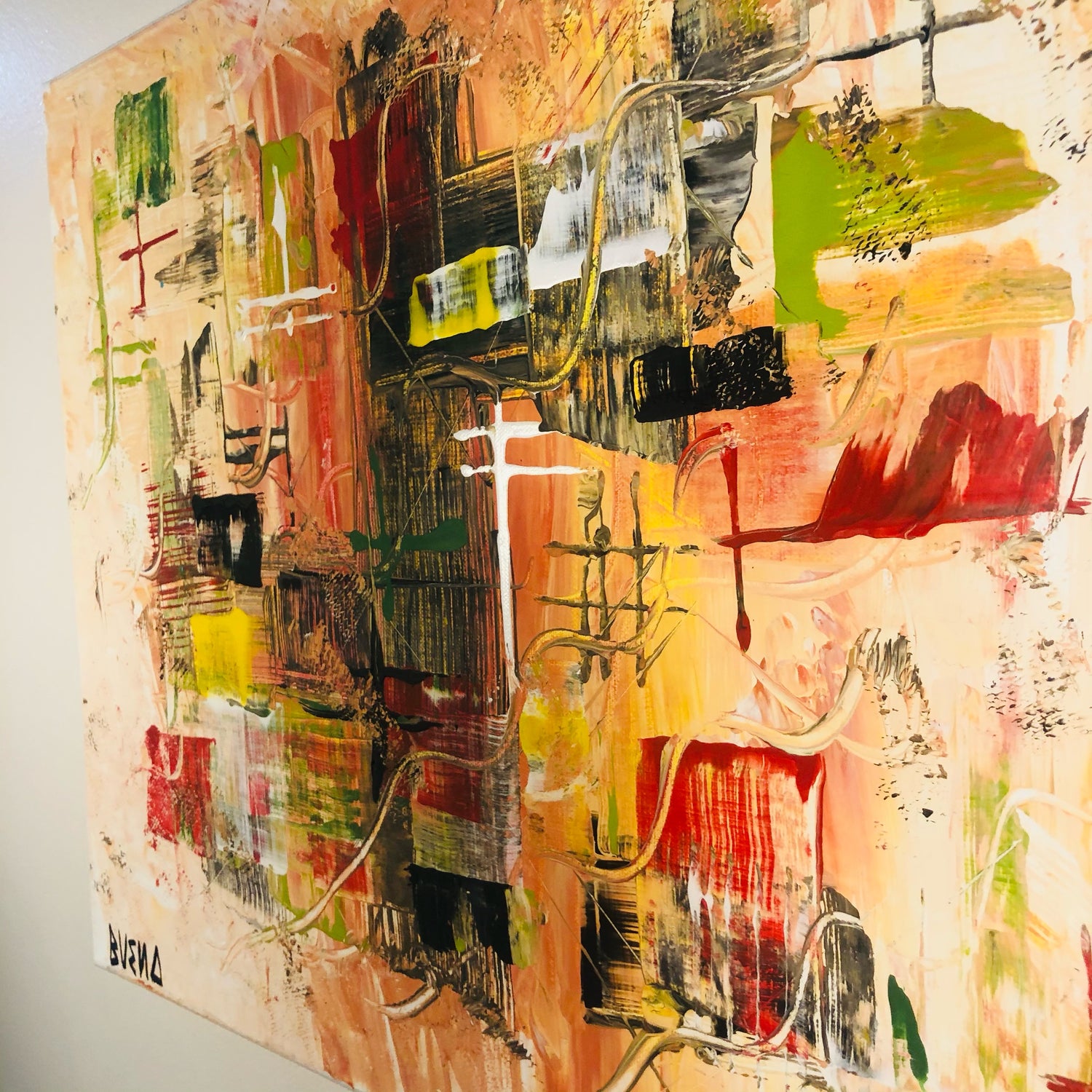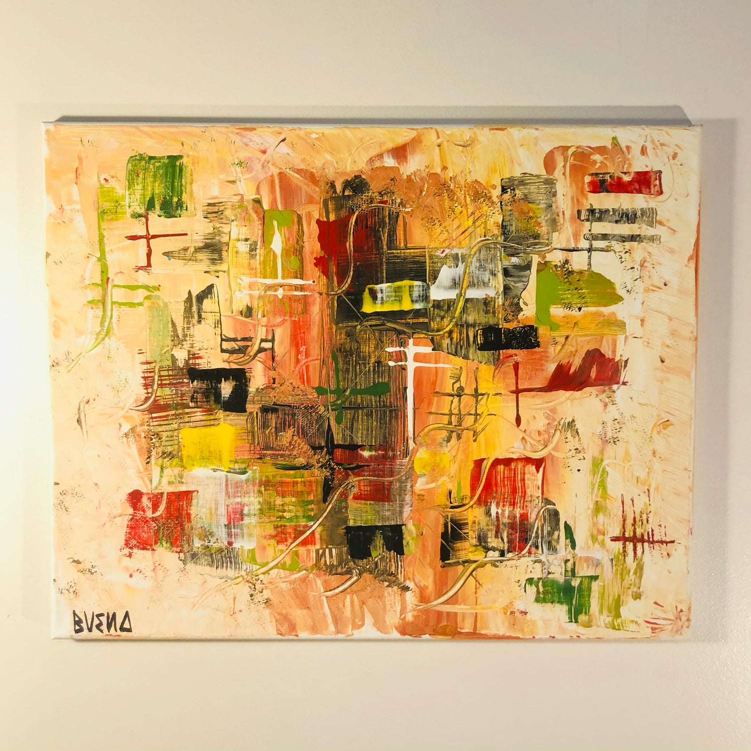 16” x 20” canvas. acrylic paint and spray paint. brush, tape, and knife. painted in Champaign, Illinois by David Bueno while drinking a smoothie sour ale.