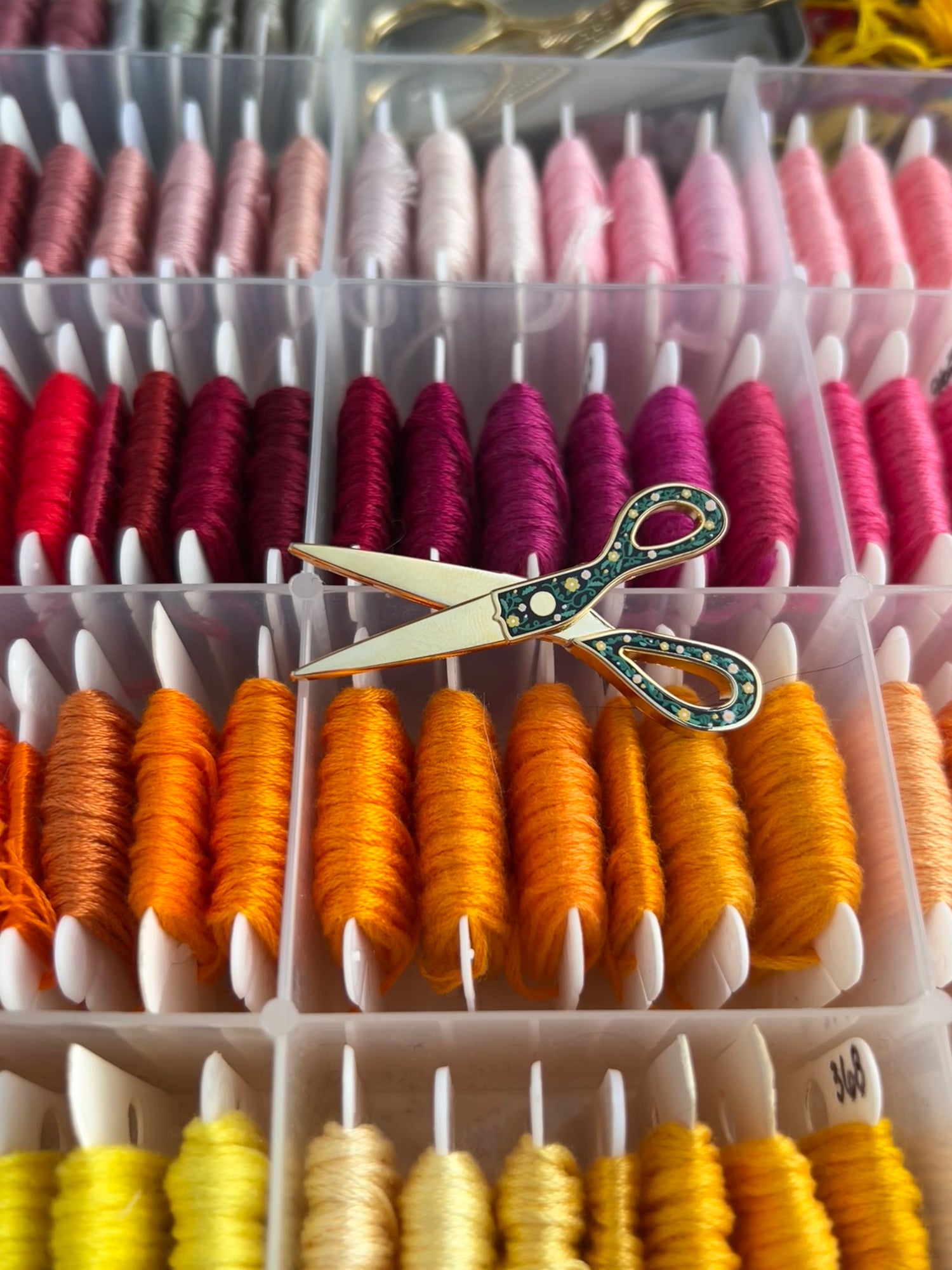 an interactive lapel pin that celebrates all the crafters! the scissors move with this fun pin. Wear it proud or gift it to the amazing crafters and artists in your life.