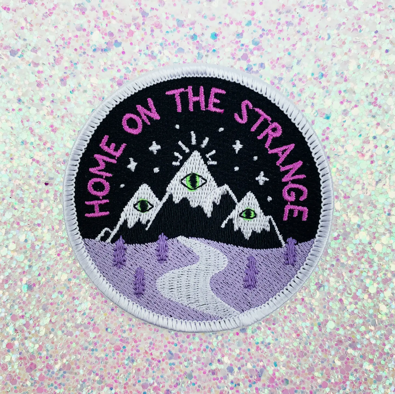 embroidered patch on twill, iron-on backing, approx. 3" wide