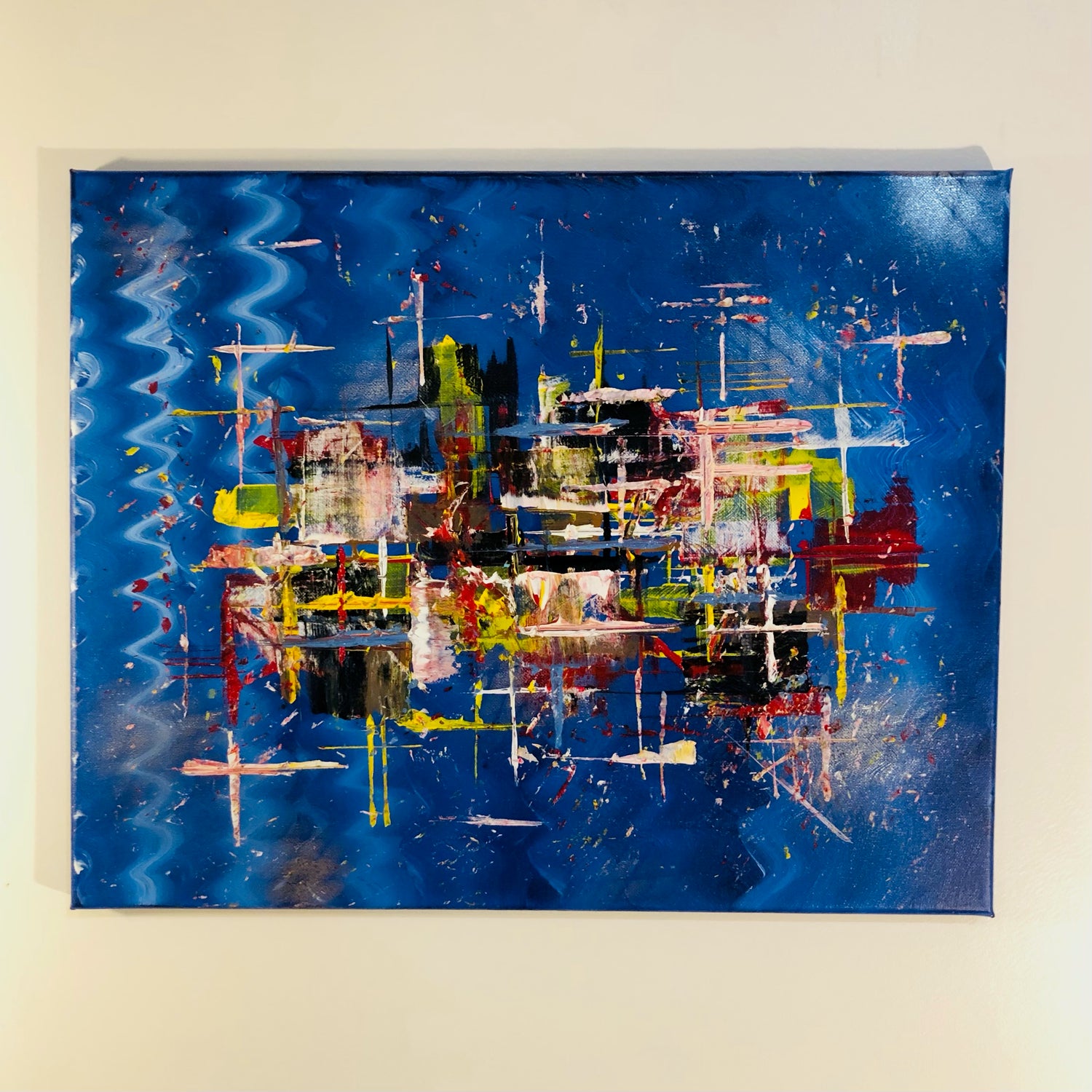 acrylic paint and spray paint. brush and knife. painted in Champaign, Illinois by David Bueno while drinking a glass of Malbec.