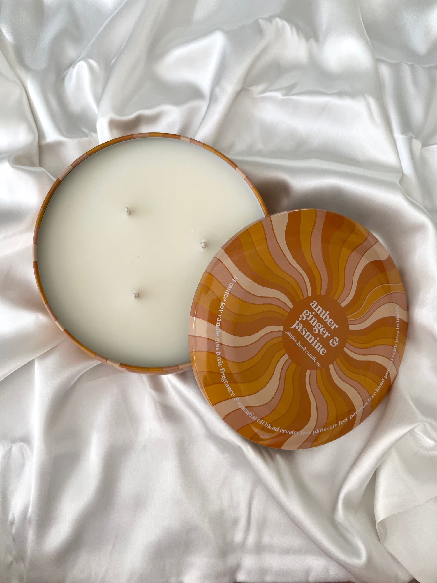 soy wax, blend of essential oils & non toxic phthalate free, paraben free fragrance, lead & zinc free wicks. hand poured in Hayden, Idaho