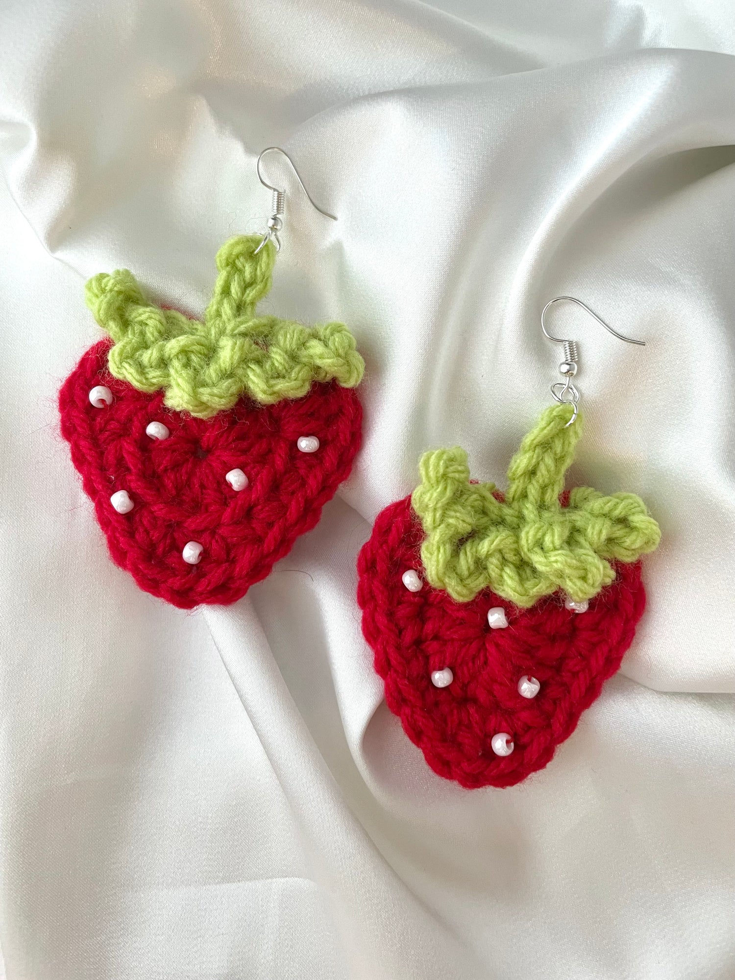 cute crochet strawberry earrings with white bead details! live out your cottage core dreams in these 💕