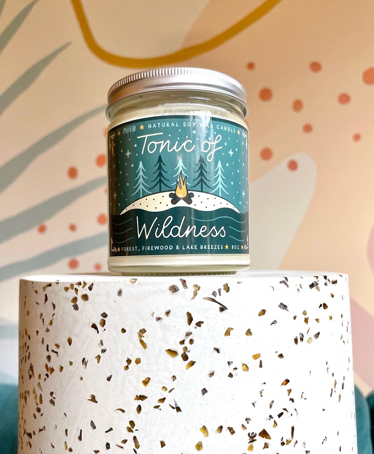 a must-have for the wild at heart. an ethereal blend of wild spruce, fir, red cedar, juniper and sandalwood pays homage to mother earth. smoky top notes dance with earthy and woodsy accords. notes of fresh rain, forest, firewood and lake breezes. 8oz, 40-50+ hr burn time.