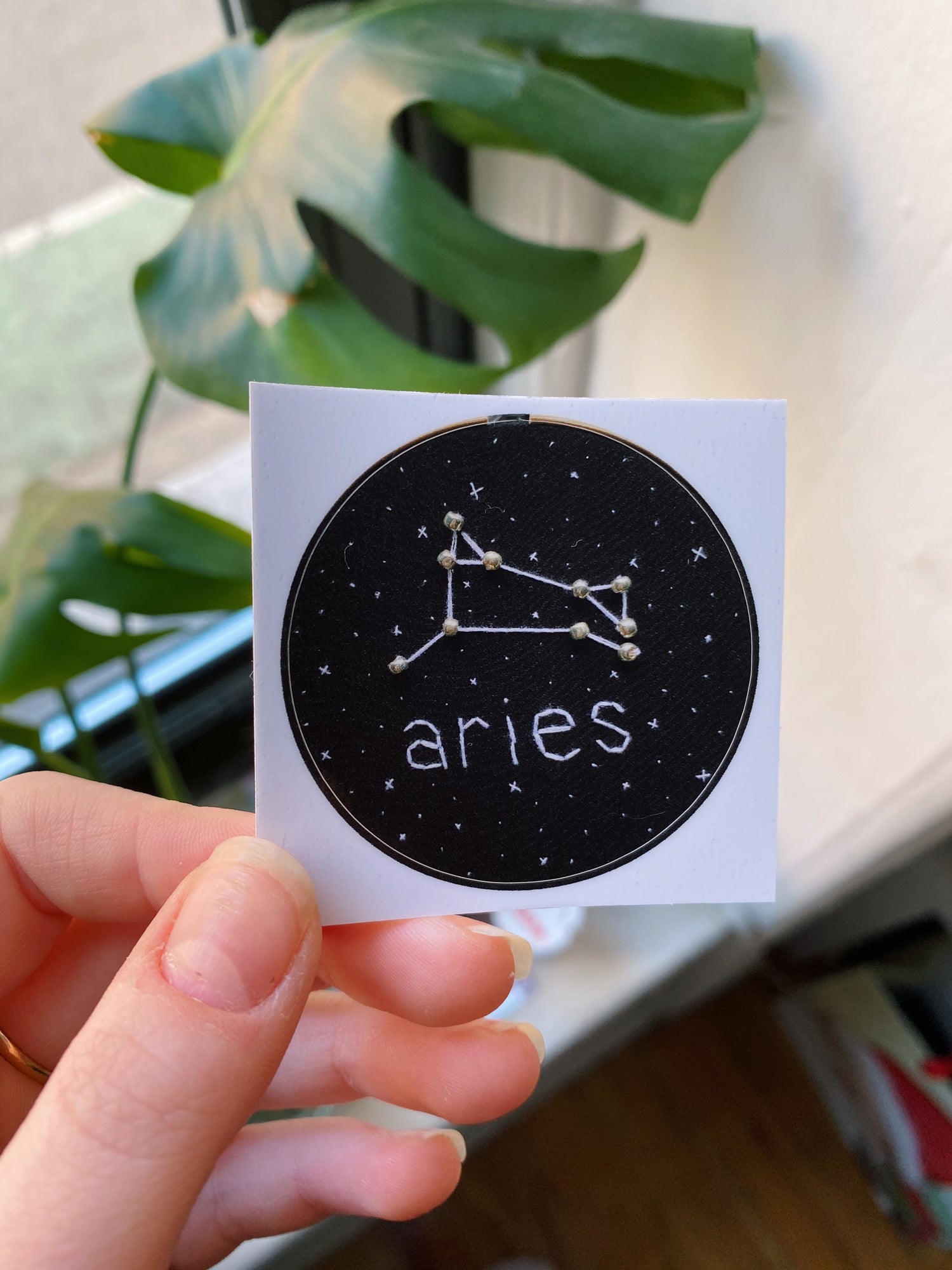 sticker of my embroidered zodiac constellations! this is NOT an embroidered sticker